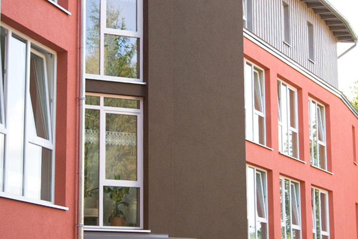 Altersgerechtes Wohnen in ein bis zwei Personen Haushalten: Das Haus haben wir mit Fenstern, Innentüren und Brandschutztüren ausgestattet. Wichtig war die optische Eingliederung die Straßenlinie.
