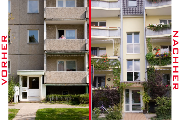 Aus alt mach neu: Hier sieht man ein gutes Beispiel dafür was man aus tristen Plattenbau machen kann. Die Aufgabe war, dass Gesicht der Plattenbaureihe zu verschönern und in das Templiner Stadtbild einzugliedern. Wir statteten den Bau mit Türen und Fenstern aus. Das Ergebnis: eine optisch ansprechende Wohnfühlatmosphäre bei maximaler Wärmedämmung und Effizienz.